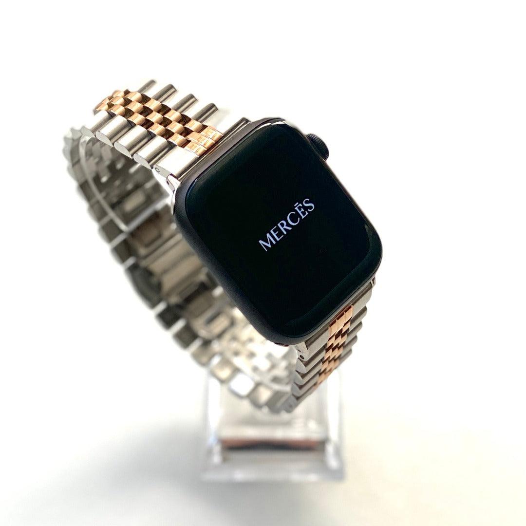 Praesto is a staple in luxury watchband collections that encapsulates a timeless design. Forged in 316L high-grade stainless steel, patterned in the traditional ‘Jubilee’ style. Praesto is characterised by three narrow, highly polished links situated between the thick, matte finish side links. Secured by a dual locked traditional butterfly clasp. The seamless clasp mechanism provides maximum comfort whilst providing a secure connection to your wrist.